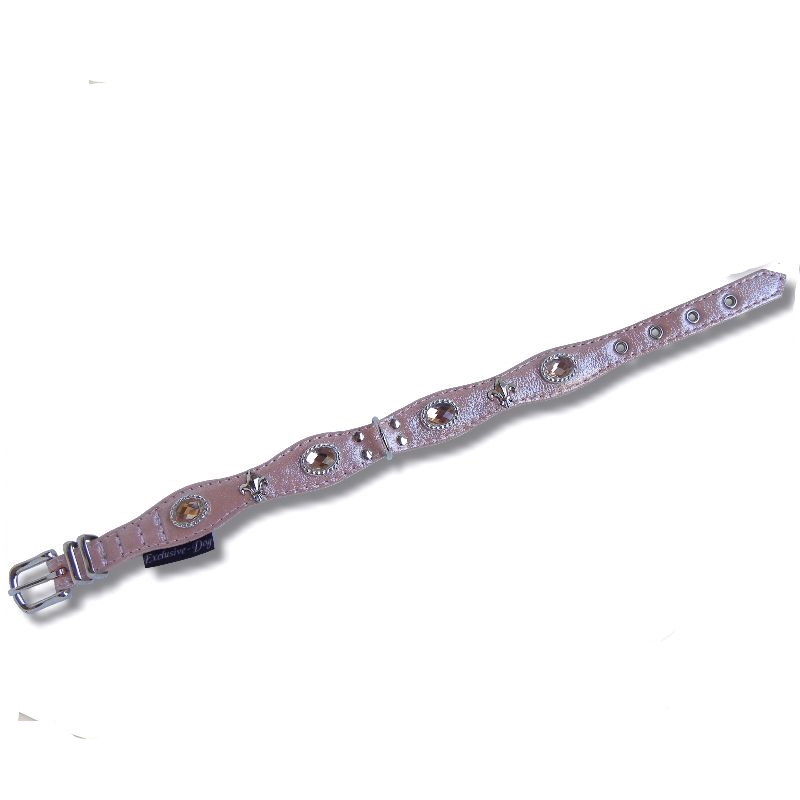 Rosa-Apricot Hundehalsband Lederhalsband Strass