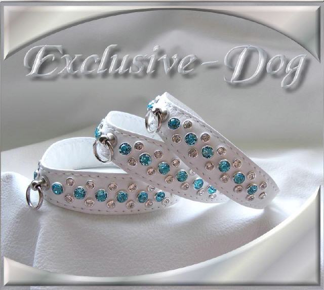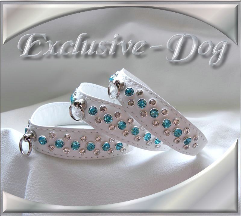 Diese edlen Strasshalsbänder wurden aus weißen Ross Nappaleder