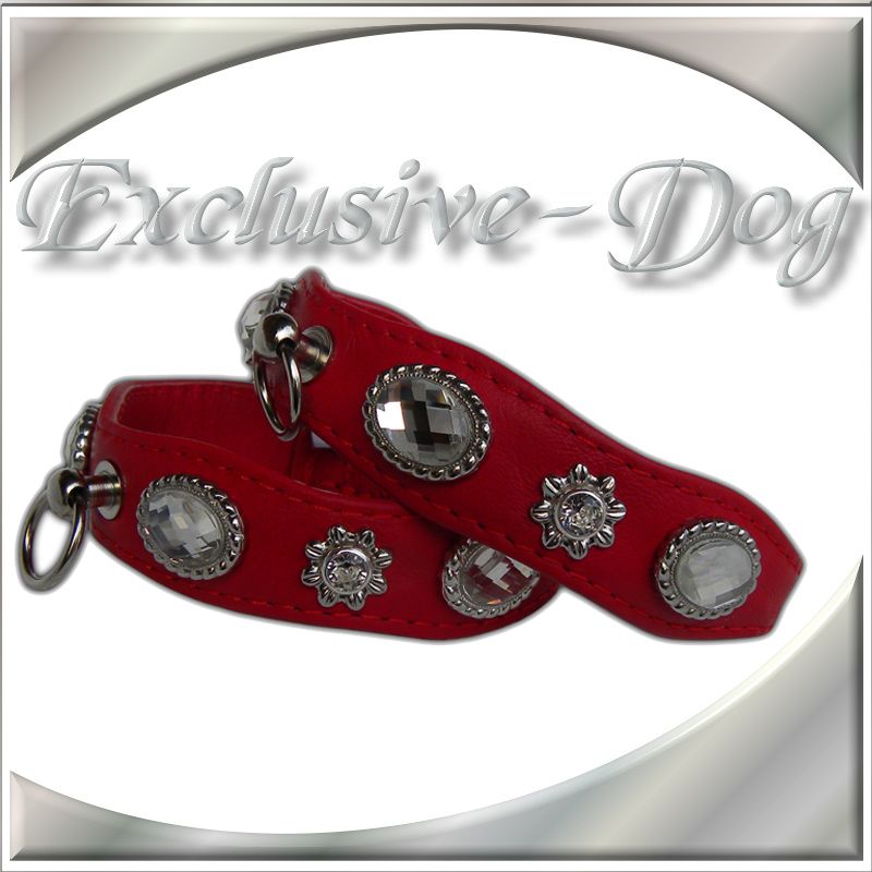 Lederhalsband XS rotes Hundehalsband Strasshalsband DOG-COLLAR für z.b. Chihuahua, Yorkshire-Terrier, Pudel