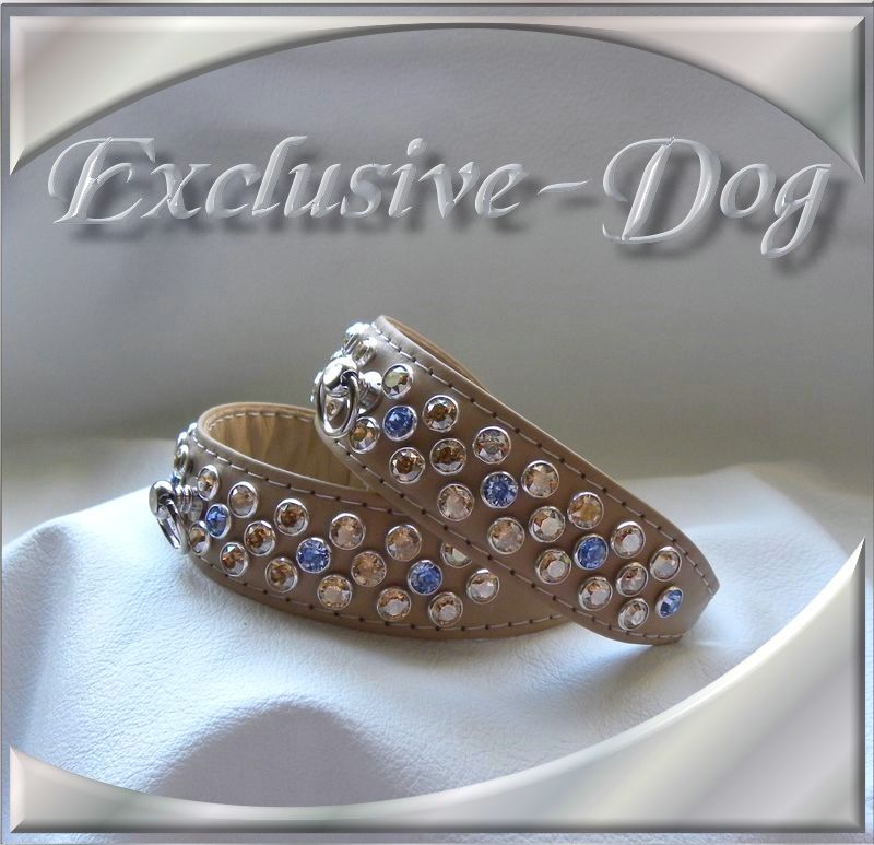Diese XS Strasshalsbänder wurden aus beige Ross- Nappaleder hergestellt,
