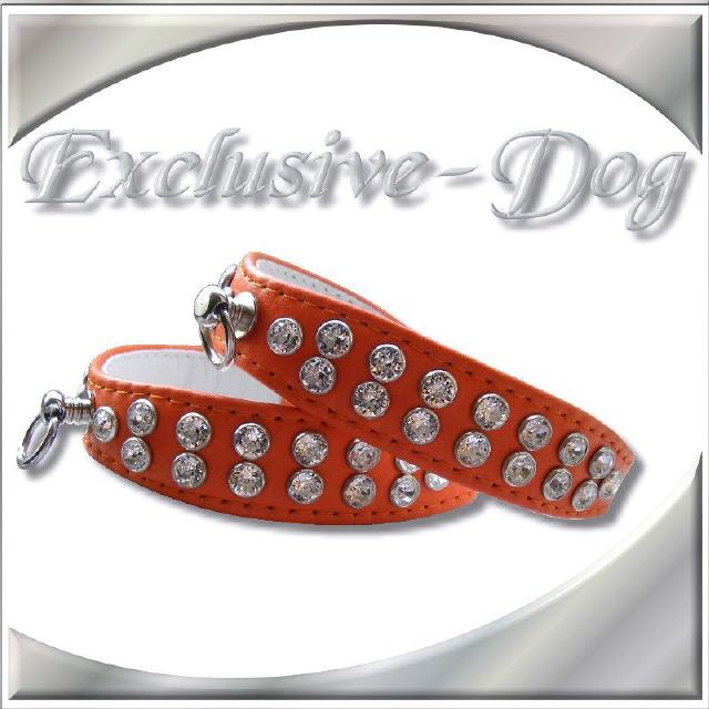 Orange farbenes Hundehalsband Strass Leder Halsband mit SWAROVSKI ELEMENTS Chihuahua Yorkshire-Terrier Prager Rattler