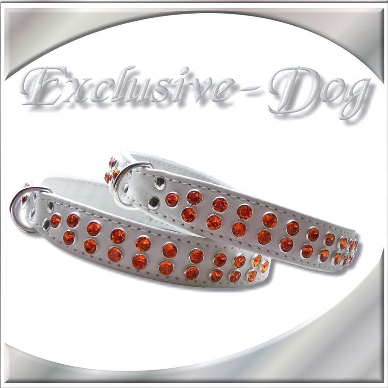 Dieses Strass-Leder Hundehalsband wurde aus weißen Nappaleder gefertigt,