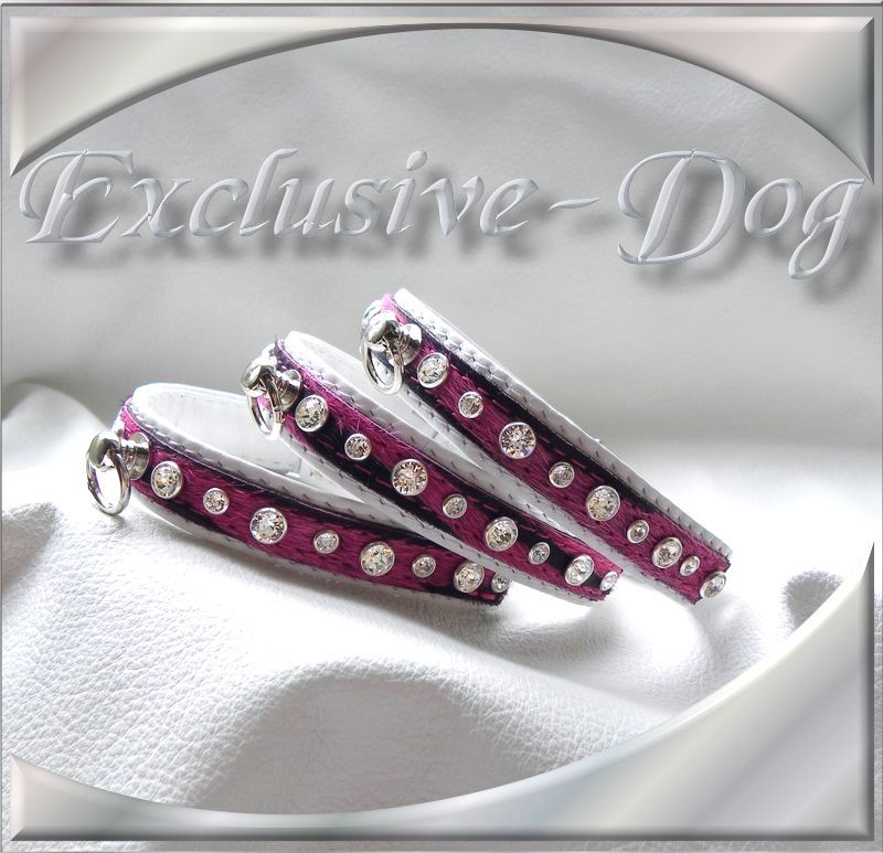 Pink - Rosa Fell Strass Leder Hundehalsband mit SWAROVSKI ELEMENTS Chihuahua Prager Rattler XS Lederhalsband