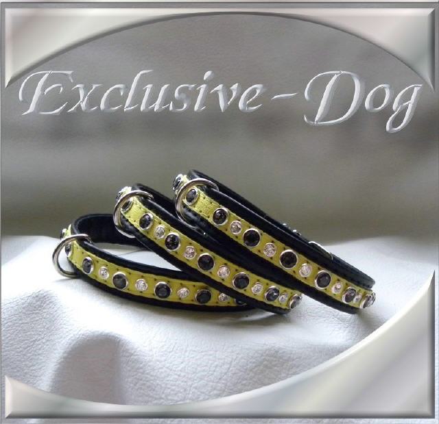 Diese kleinen Halsbänder wurden aus aus schwarz / gelben Nappaleder hergestellt.