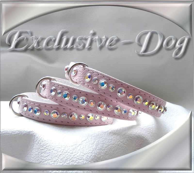 Diese XS Strass-Halsbänder wurden aus rosa Nappaleder hergestellt,