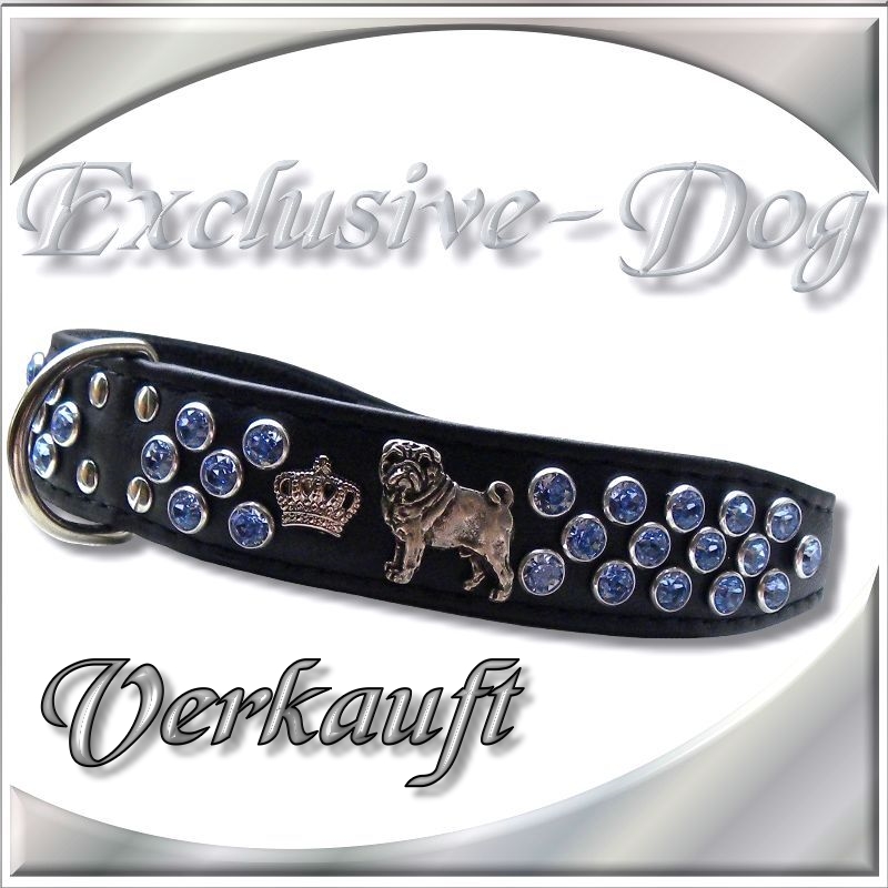 Mops Hundehalsbänder Lederhalsbänder Strass Pug Dog mit SWAROVSKI ELEMENTS