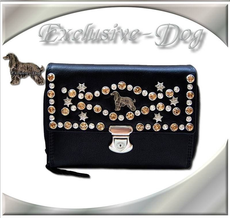 Afghane Windhund Leder-Damen-Geldbörse Purse/Wallet mit SWAROVSKI ELEMENTS