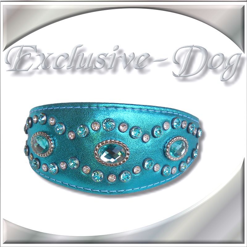 Whippet Windhund Lederhalsband Hundehalsband mit SWAROVSKI ELEMENTS metallic Türkis Strasshalsband