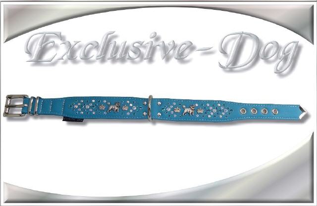 Türkis Lederhalsbänder Französische Bulldogge Strasshalsbänder mit SWAROVSKI ELEMENTS Hundehalsbänder