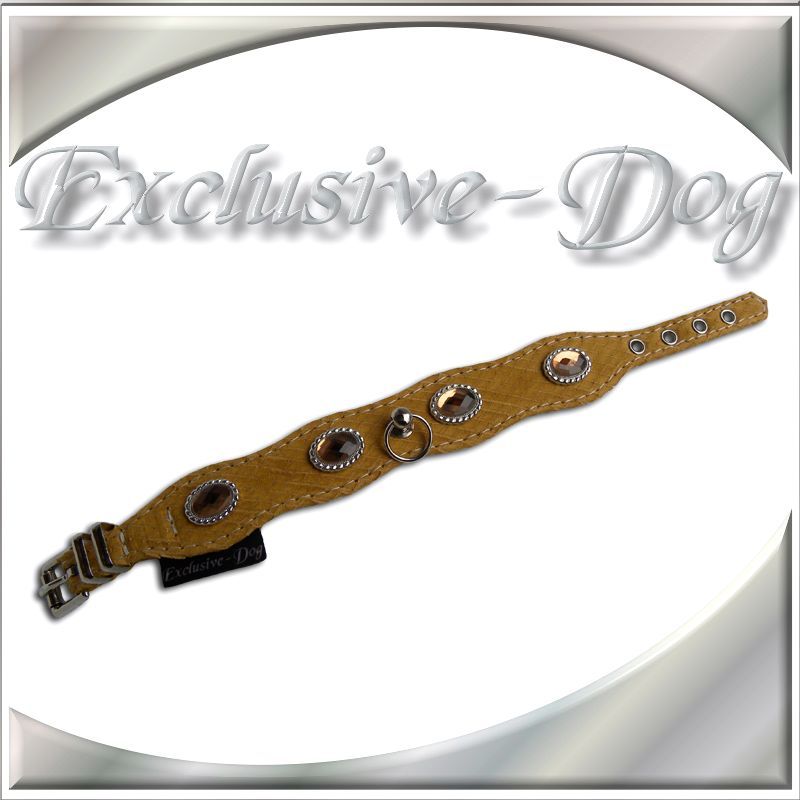 Die ovalen Glassteine in Topaz-Farbe verleihen dem Halsband einen edlen Glanz.