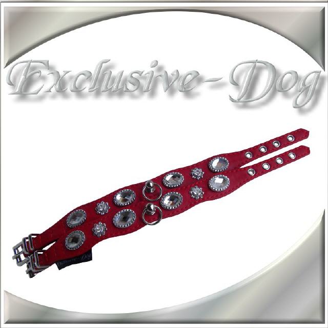 Lederhalsband XS rotes Hundehalsband Strasshalsband DOG-COLLAR für z.b. Chihuahua, Yorkshire-Terrier, Pudel
