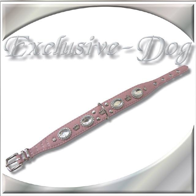 Rosa / pink Hundehalsband Strasshalsband Lederhalsband Hunde für z.B. Cocker Spaniel, Mops, West Highland Terrier