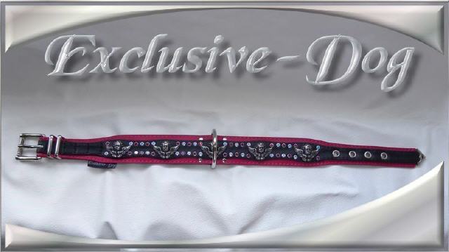 PINK Magenta Hundehalsband ENGEL Strass Leder