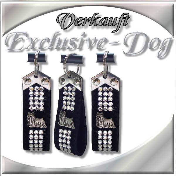 Yorkshire Terrier Schlüsselanhänger Strass Leder mit SWAROVSKI ELEMENTS schwarz Anhänger