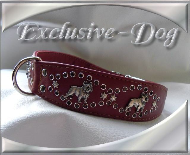 Lederhalsband Französische Bulldogge mit SWAROVSKI ELEMENTS Strasshalsband French Bully