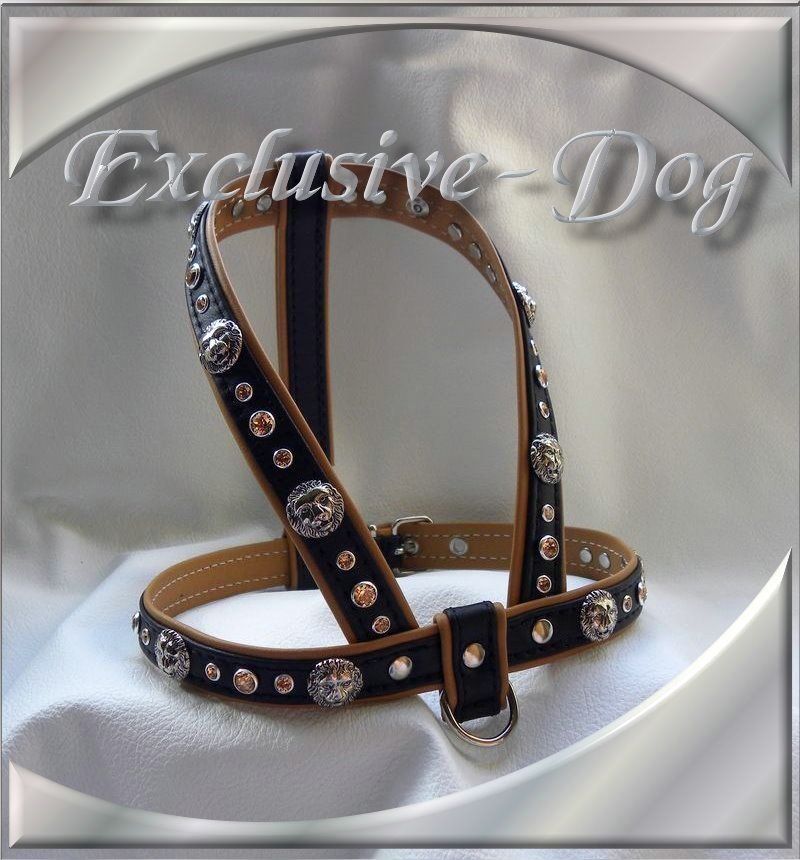 Brustgeschirr Strass Leder Geschirr mit SWAROVSKI ELEMENTS Löwenköpfen Dog Harness