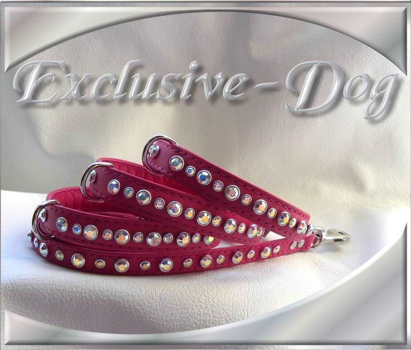 Chihuahua Strass Lederleine mit SWAROVSKI ELEMENTS Prager Rattler mini Leine mit Strass