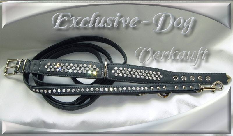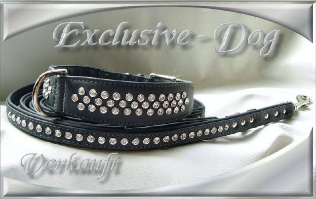 GLAMOURÖSES Leder Set ( Halsband / Leine ) besticht mit seinem funkelnden Strass
