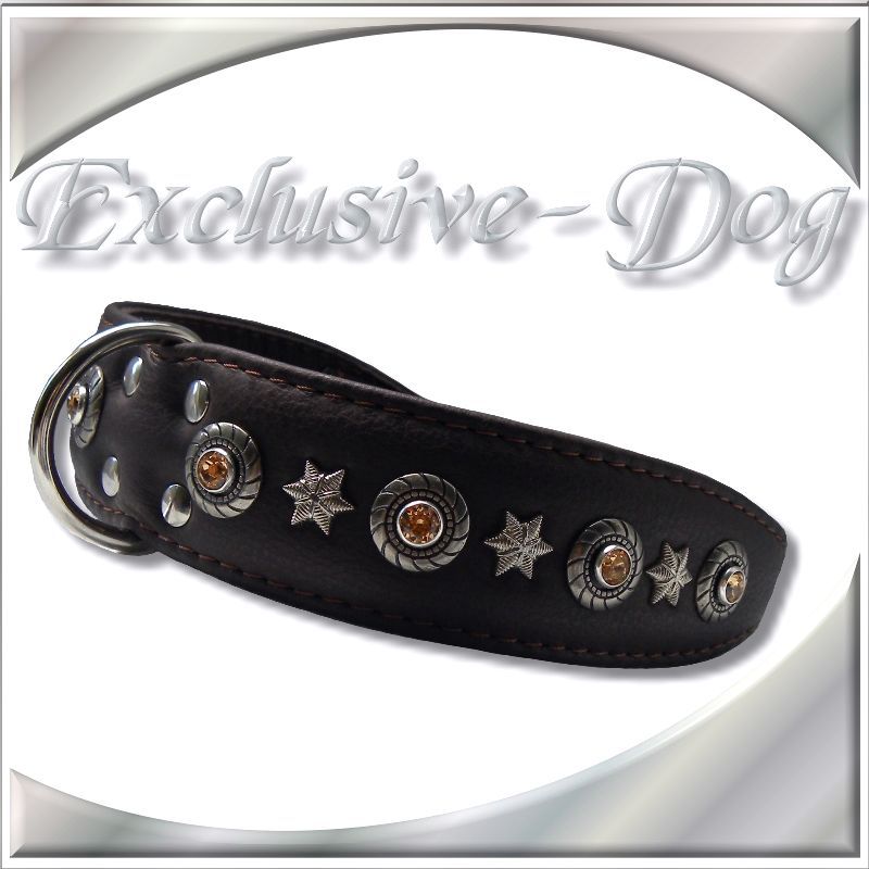 Lederhalsband braunes Hundehalsband mit SWAROVSKI ELEMENTS für z.b. Mops, Shelti