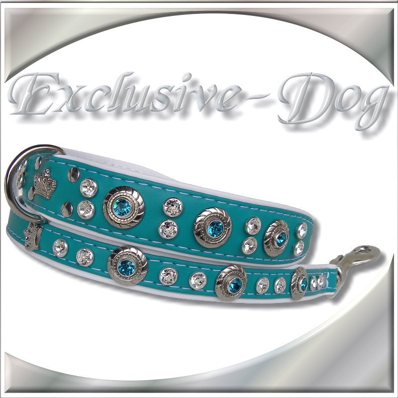 Dieses Set Hundehalsband& Leine wurde aus weiß /türkisgrünen Rossnappaleder hergestellt,
