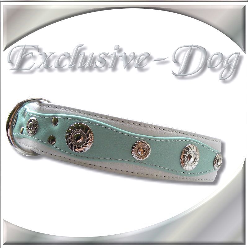 Dieses Leder Hundehalsband wurde aus weißen / mint farbenen Nappaleder gefertigt,