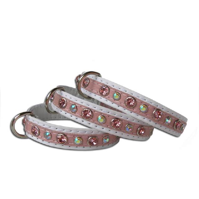 Pink - Rosa Fell Strass Leder Hundehalsband mit SWAROVSKI ELEMENTS Chihuahua Prager Rattler XS Lederhalsband " Strasshalsband 8887 "