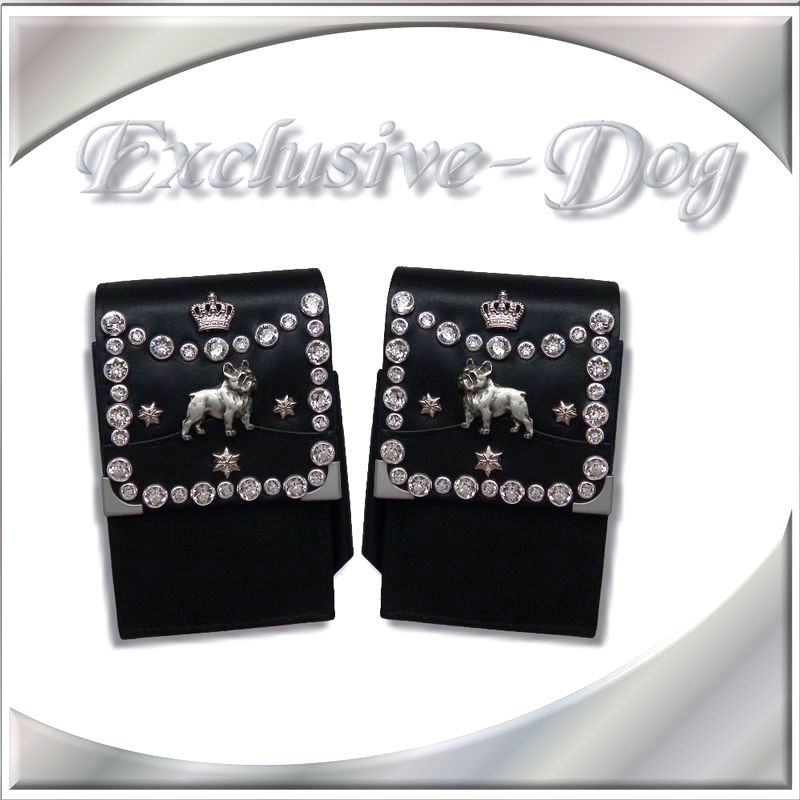 Strass Leder Zigarettenetui Zigarettenbox mit SWAROVSKI ELEMENTS Französische Bulldogge