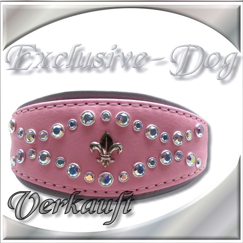 Rosa Windhundhalsband Lederhalsband Strasshalsband mit SWAROVSKI ELEMENTS für z.b. Whippet-Italienische Windspiel